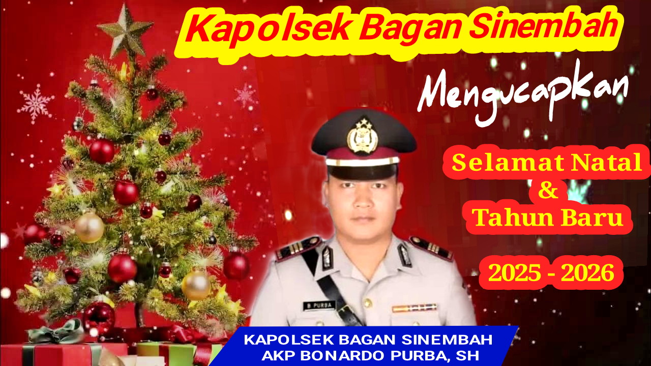 BAGAN SINEMBAH – Kepala Kepolisian Sektor (Kapolsek) Bagan Sinembah, AKP Bonardo Purba, menyampaikan ucapan selamat Natal 2025 dan Tahun Baru 2026 kepada seluruh masyarakat, khususnya umat Kristiani yang merayakan.