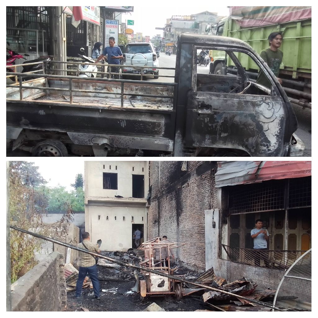 Kebakaran tersebut terjadi pada Selasa dini hari sekitar pukul 01.30 WIB dan menghanguskan dua unit rumah  (ruko) yang berada di pinggir Jalan Lintas Sumatera. Api diduga berasal dari korsleting listrik, namun penyebab pasti kebakaran masih dalam penyelidikan pihak berwenang.
