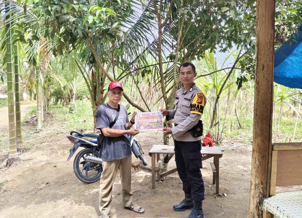 Bhabinkamtibmas Kepenghuluan Suka Jadi, Bripka Aperius Halawa, turun langsung ke lapangan untuk memberikan imbauan kepada masyarakat terkait bahaya kebakaran hutan dan lahan, khususnya menjelang musim kemarau.