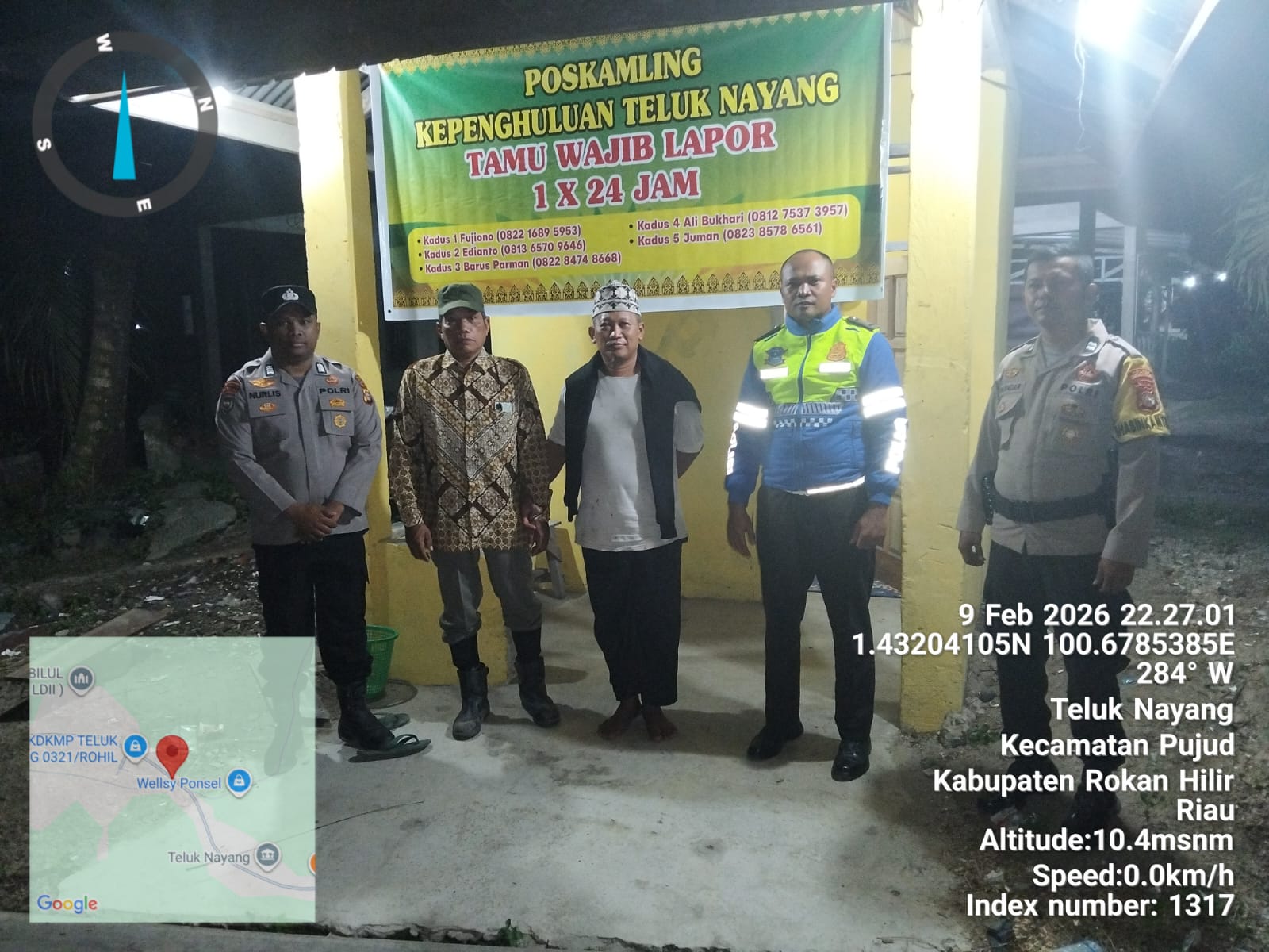Kegiatan pengecekan tersebut dilaksanakan mulai pukul 22.00 WIB hingga selesai, dengan menyasar dua lokasi, yakni Poskamling II Kepenghuluan Teluk Nayang dan Poskamling I Kepenghuluan Sungai Pinang, Kecamatan Pujud, Kabupaten Rokan Hilir.