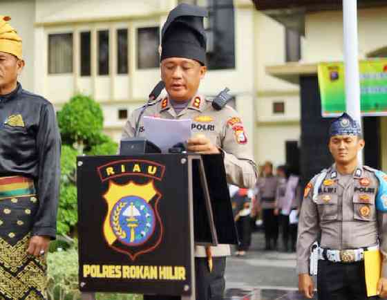 Apel dipimpin langsung oleh Kapolres Rokan Hilir, AKBP Isa Imam Syahroni, S.I.K., M.H., bersama Sekretaris Lembaga Adat Melayu Riau (LAMR) Kabupaten Rokan Hilir, Datuk Bachtiar, S.H. Bertindak sebagai Perwira Upacara AKP Yuliardi, S.H., dan Komandan Upacara IPDA Dean Napisa Nasution.