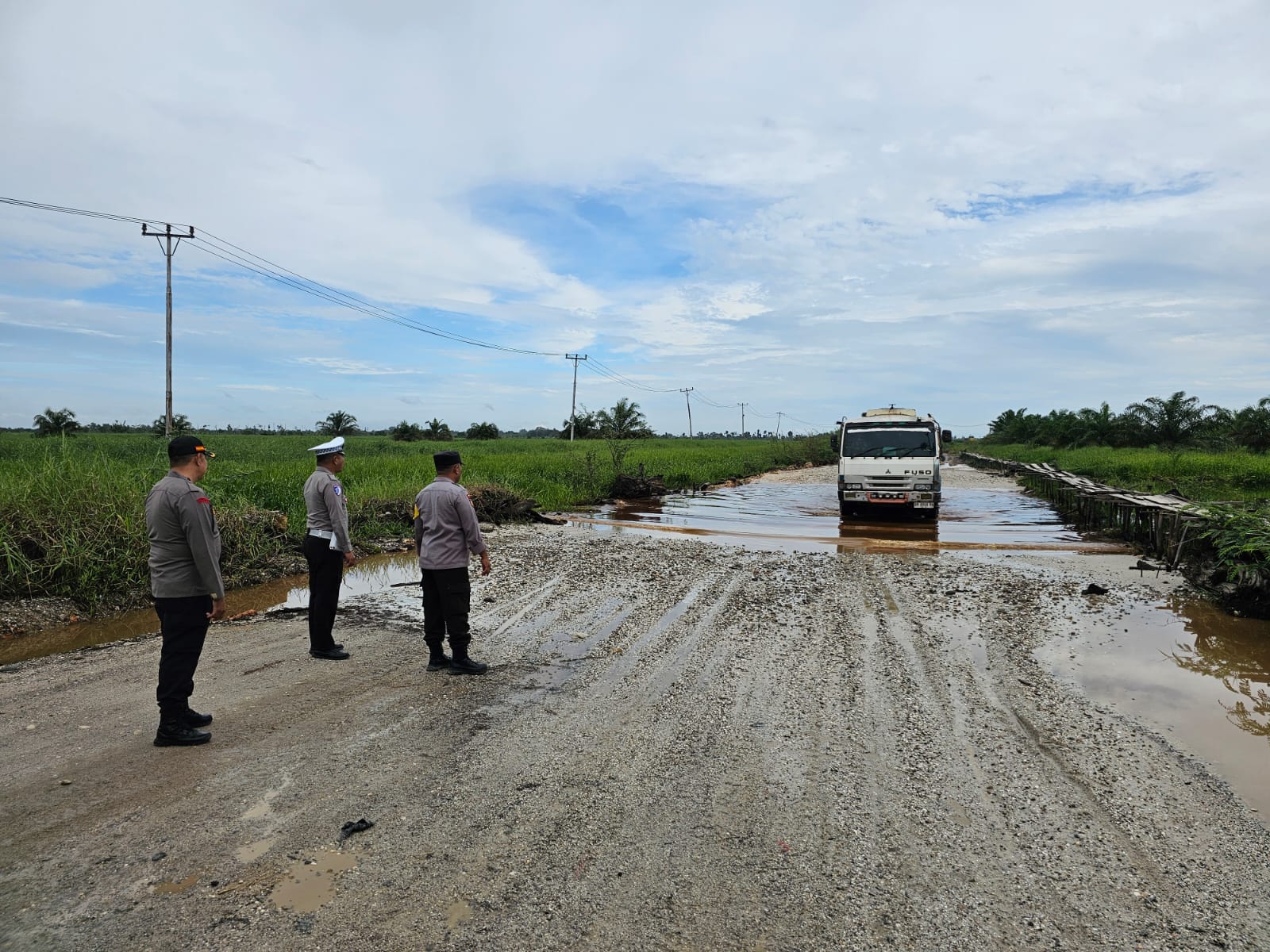 Dalam kegiatan tersebut, personel Polsek Bonai Darussalam juga memberikan informasi langsung kepada warga dan para pengguna jalan terkait kondisi terkini akses jalan, serta mengimbau agar tetap waspada dan berhati-hati saat melintas.