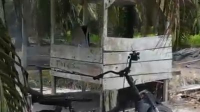 “Motor itu diparkir di pos saat mereka patroli. Ketika kembali, kendaraan sudah dalam kondisi terbakar dan tidak bisa digunakan lagi,” ujar sumber tersebut.