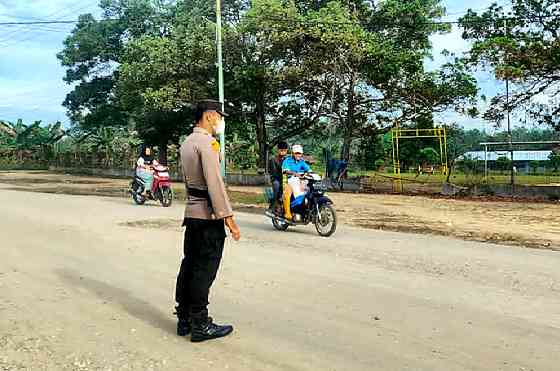 Polsek Pujud Gelar Strong Point Pagi di Dua Lokasi, Lalu Lintas Terpantau Lancar