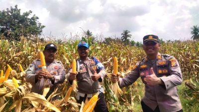 KUBU BABUSSALAM — Kapolsek Kubu, AKP Rudi Artono Sitinjak, S.H., meninjau langsung lahan pertanian jagung pipil…